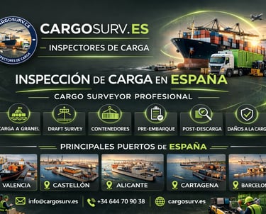 Servicios profesionales de inspección de carga marítima en España. Draft survey, control de mercancías y evaluación de daños en los puertos españoles.